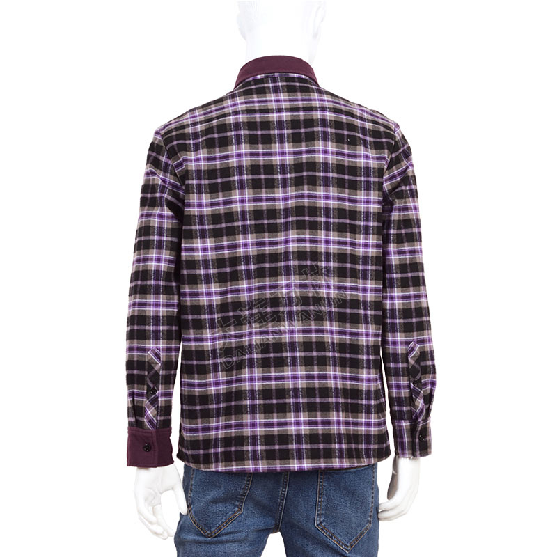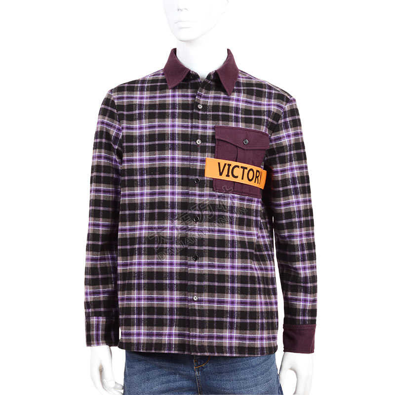 紫色撞色格子衬衫