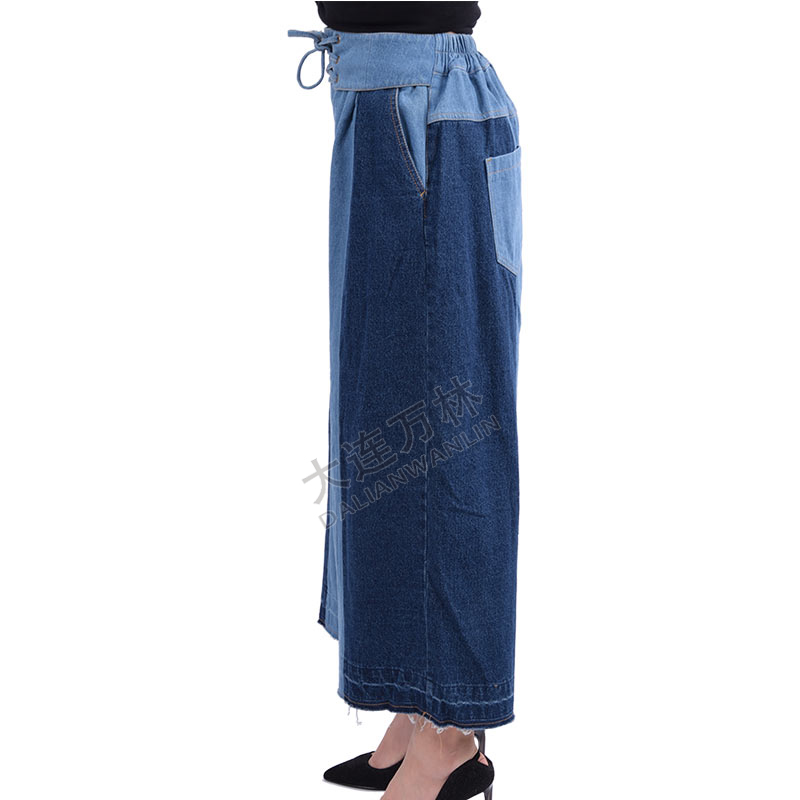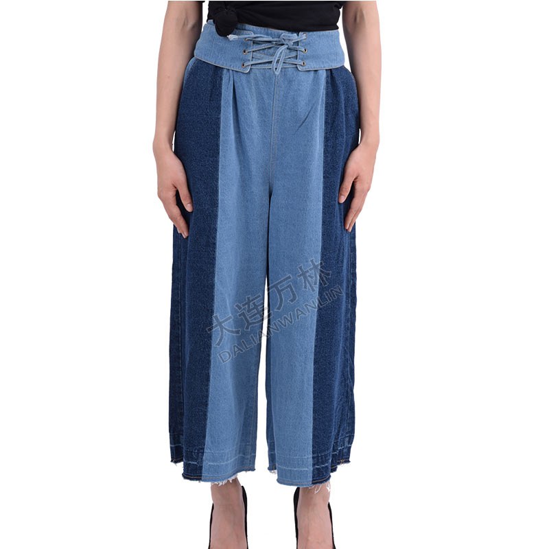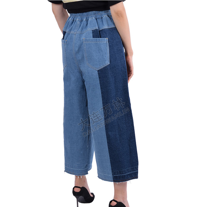 拼接高腰牛仔裤