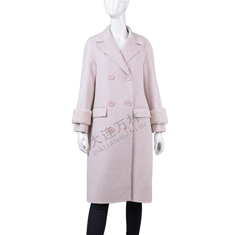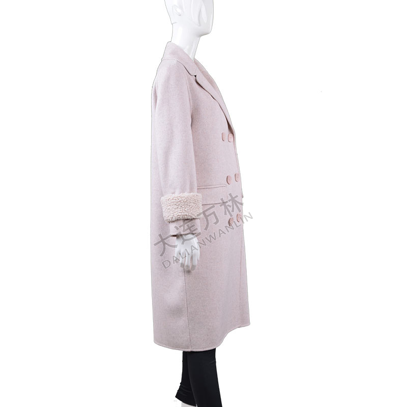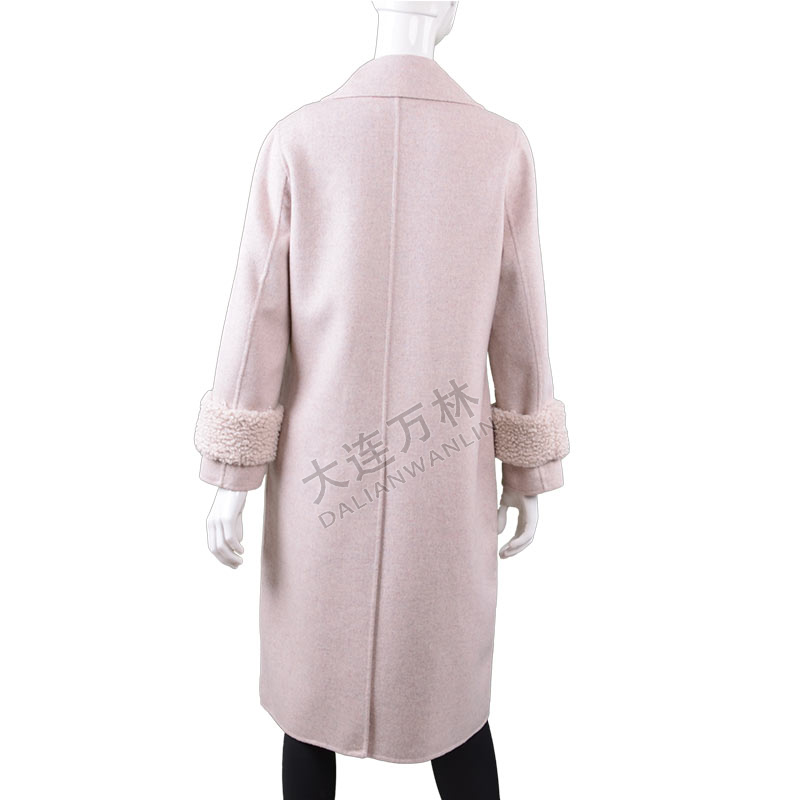 女士西服领羊羔毛袖口长款毛呢