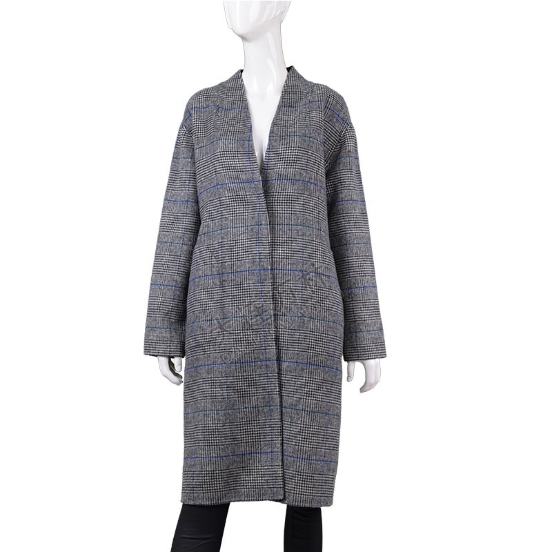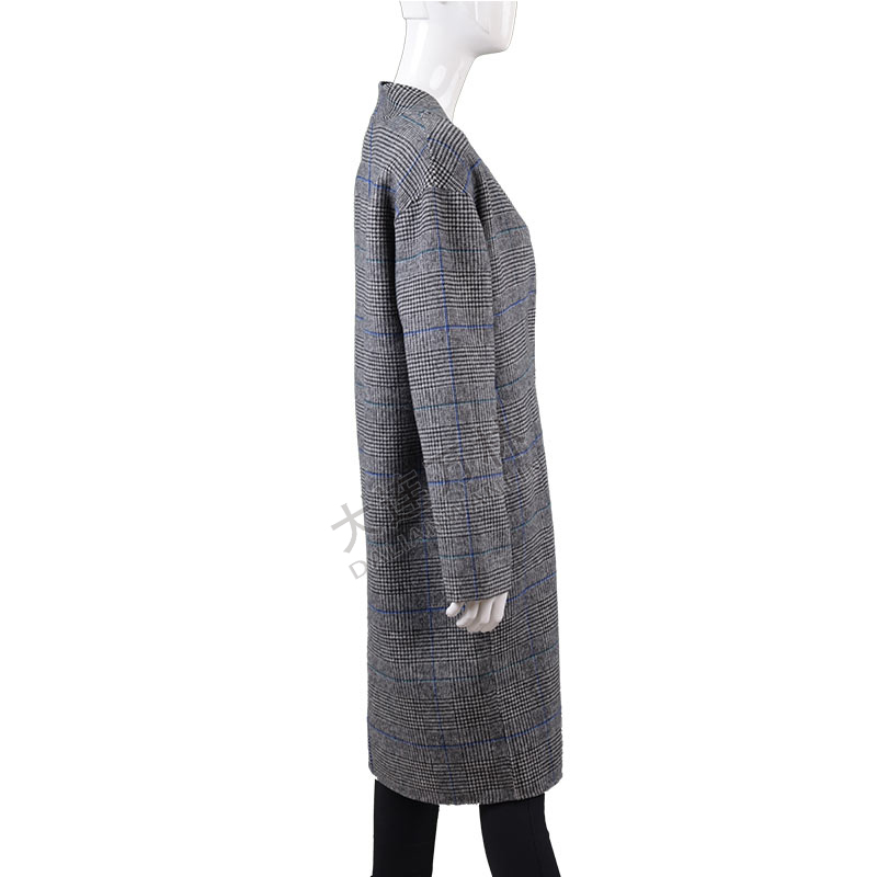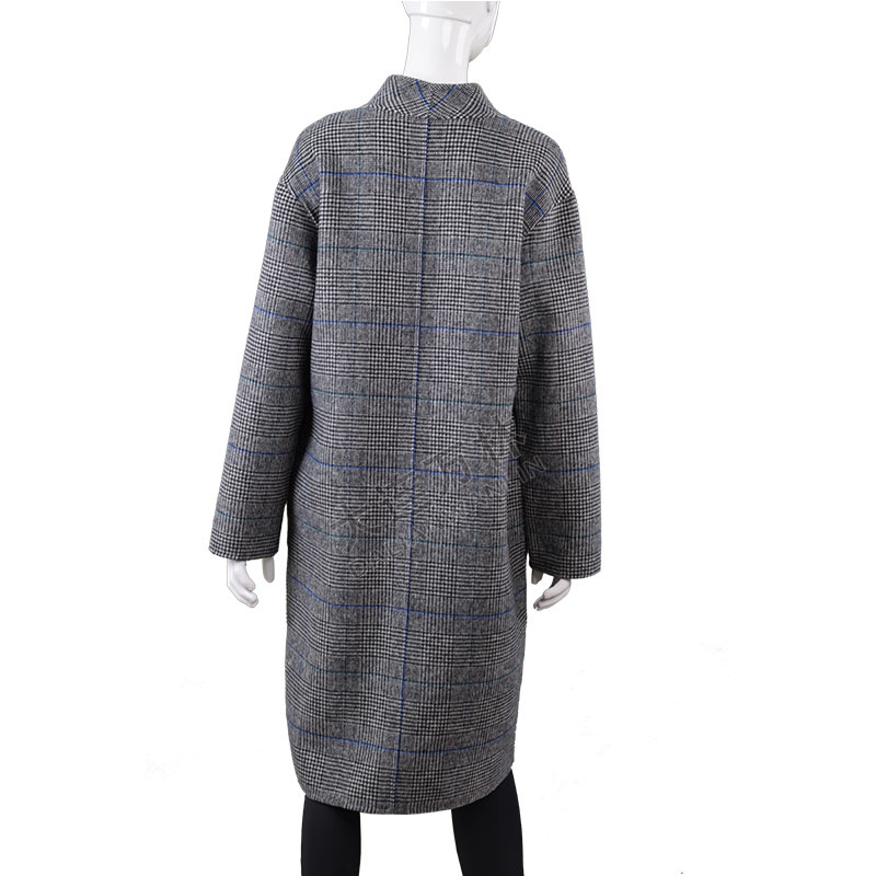 女士简约格纹长款毛呢