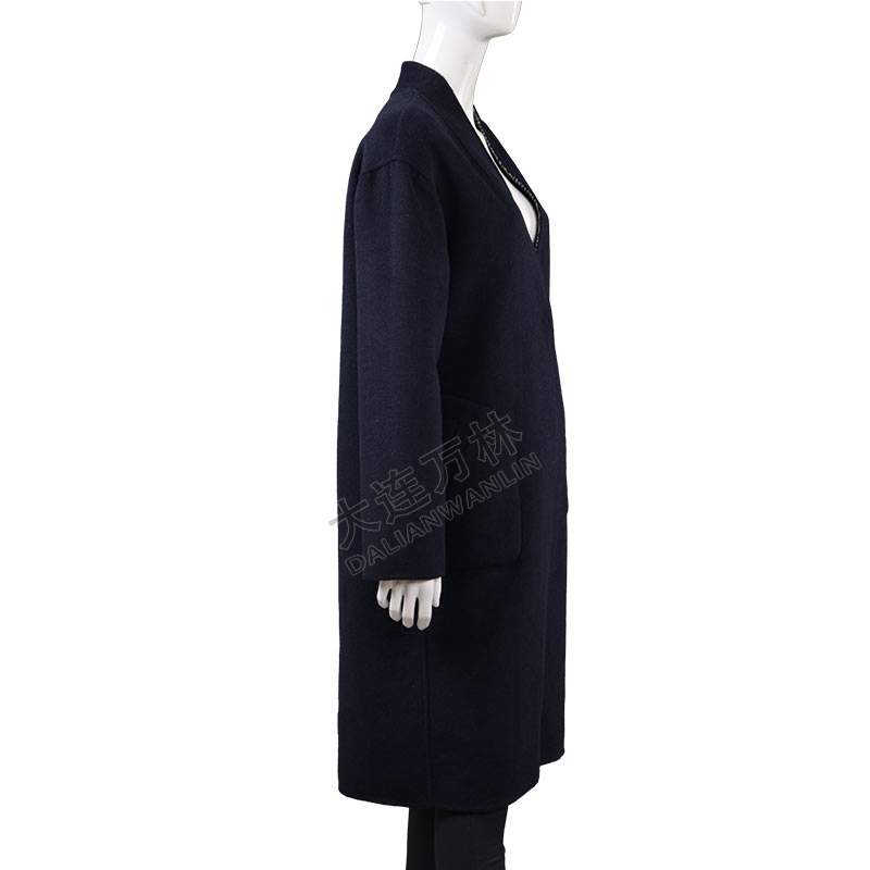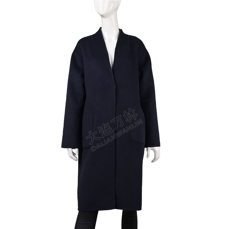 女士简约纯色长款毛呢