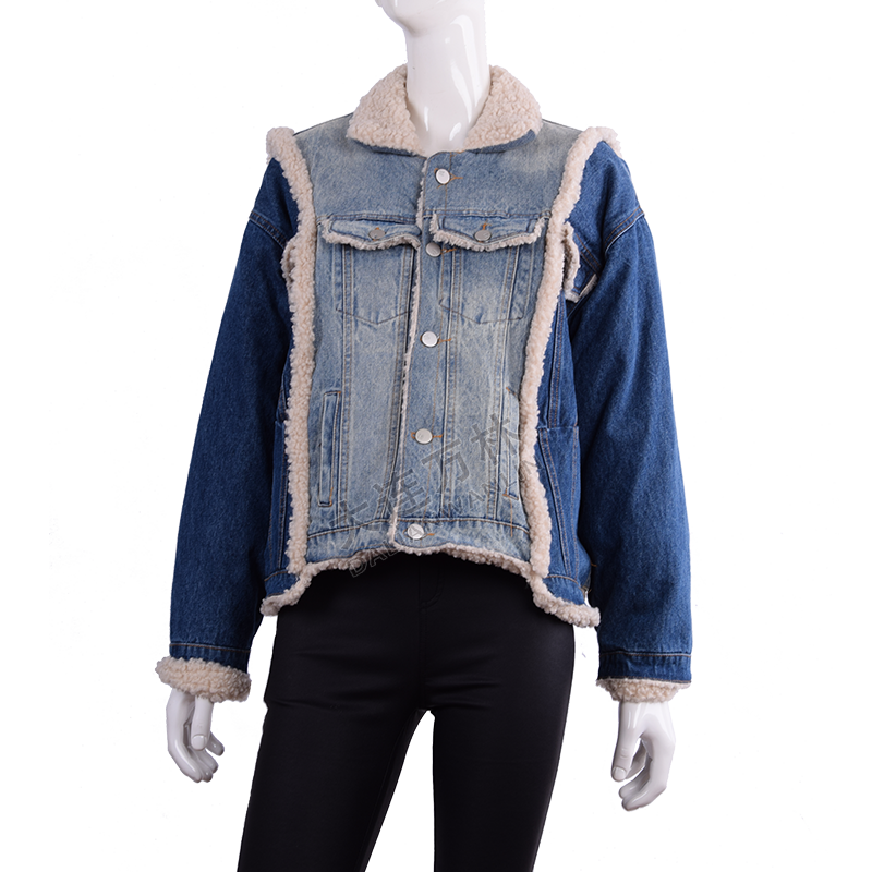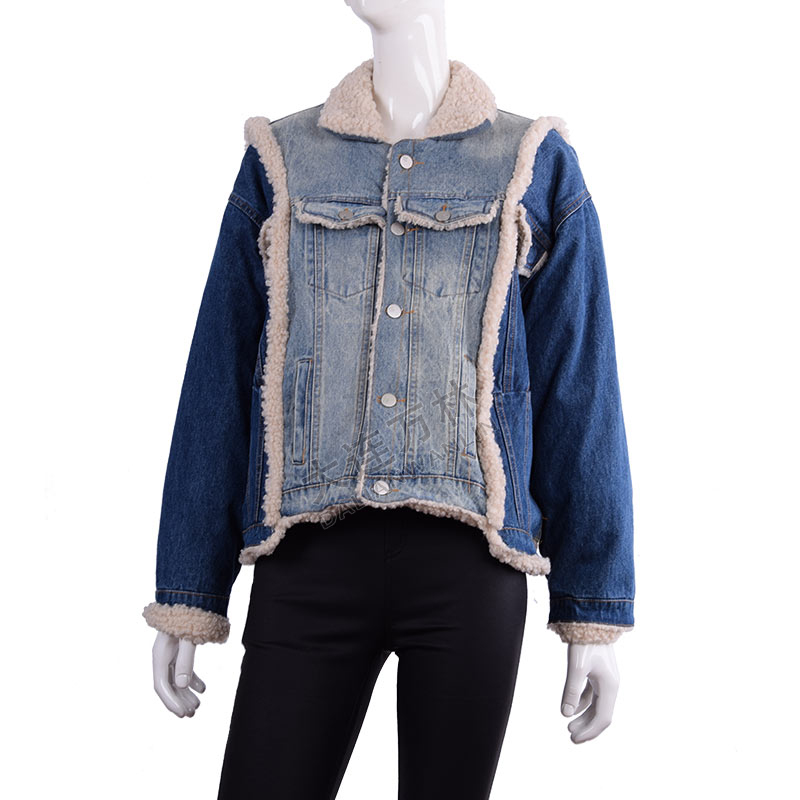 牛仔拼接羊羔毛