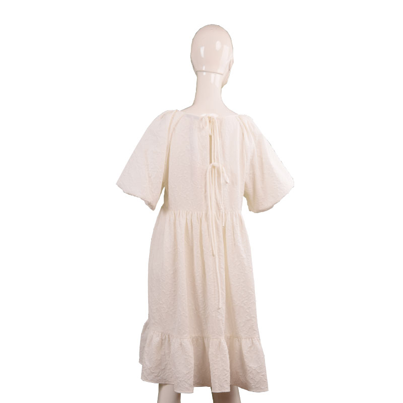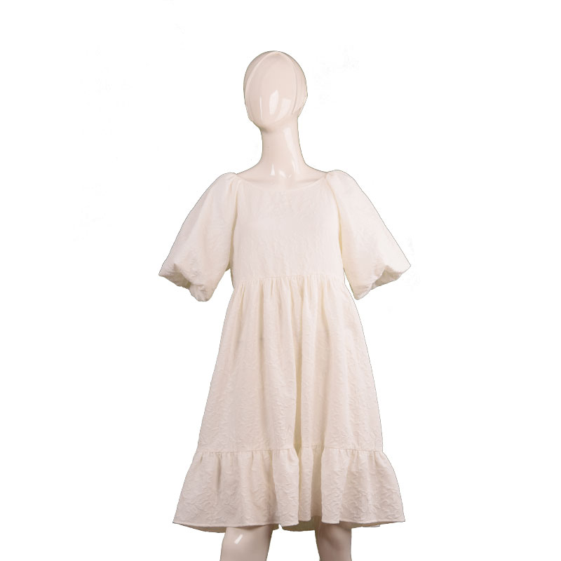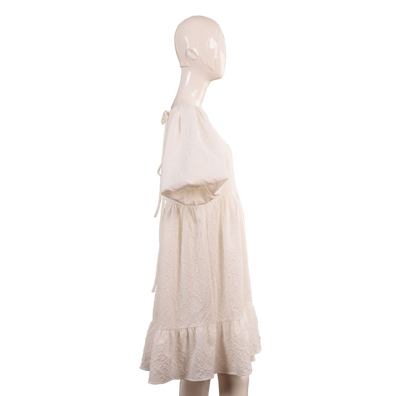 女士白色褶皱泡泡袖连衣裙