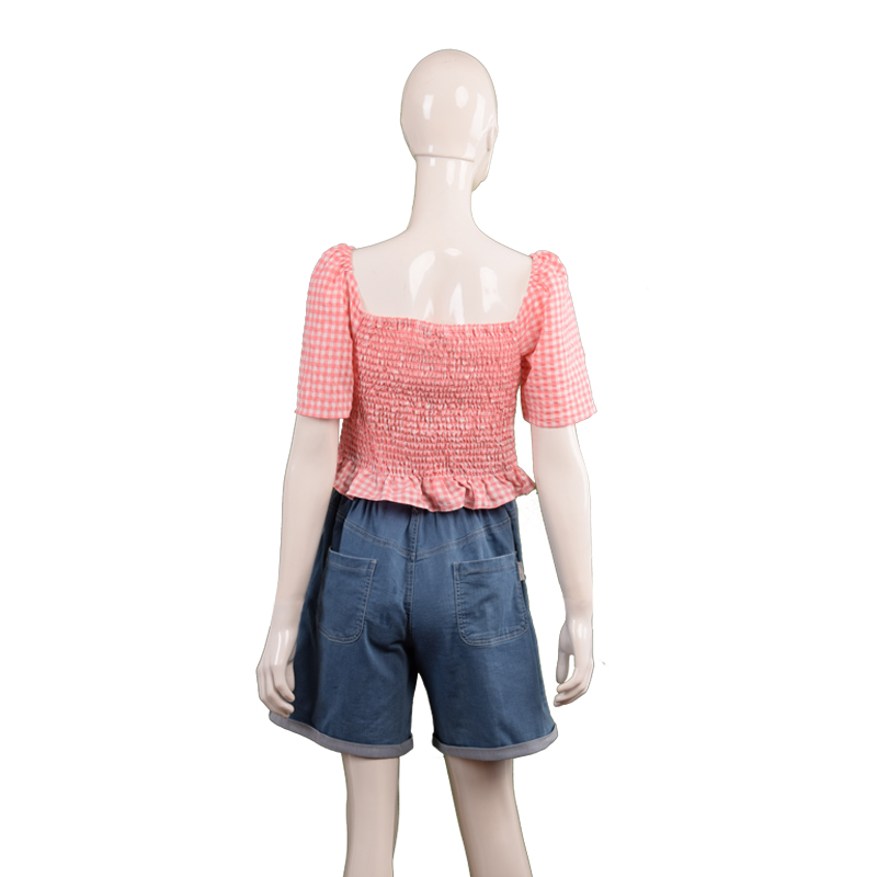 女士格纹一字领上衣