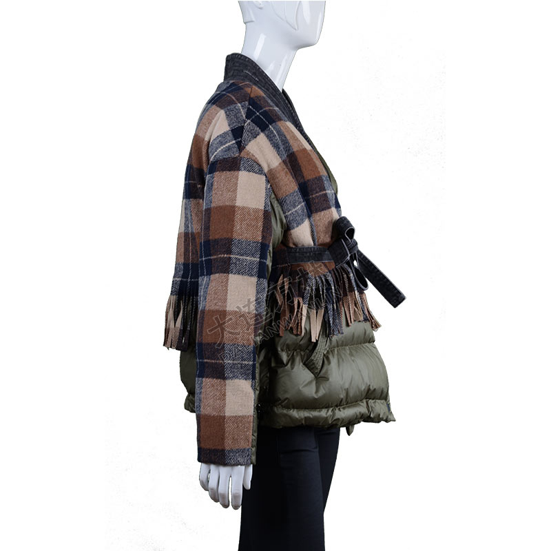 女士拼接腰部系带羽绒服