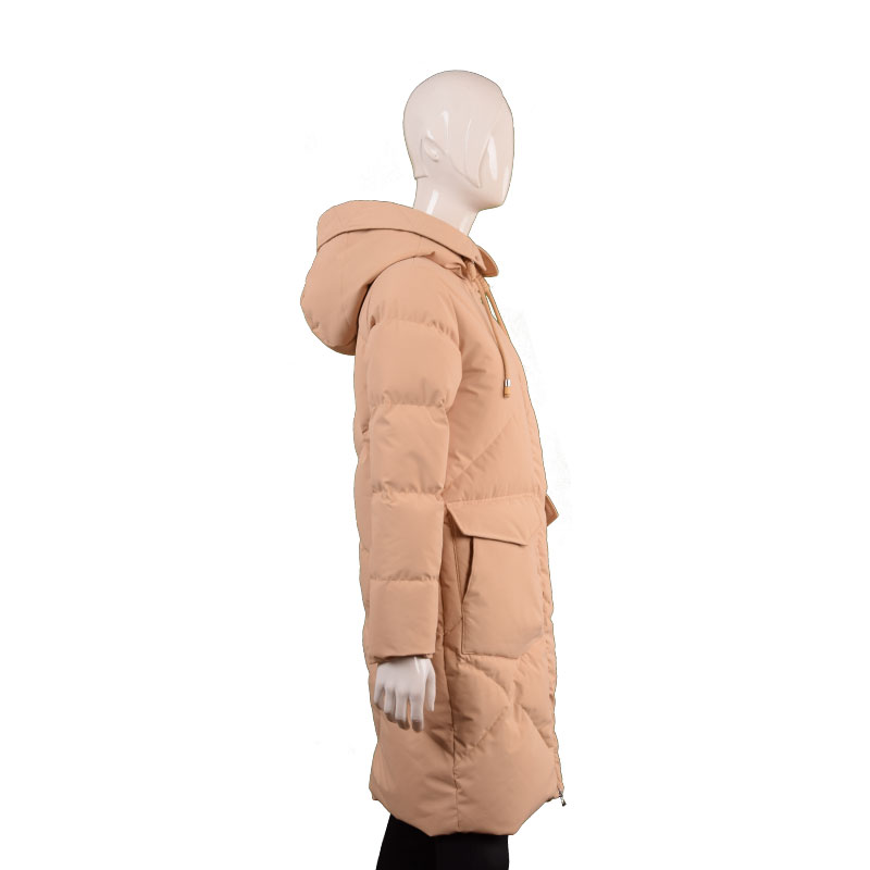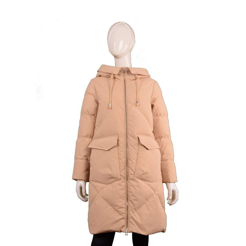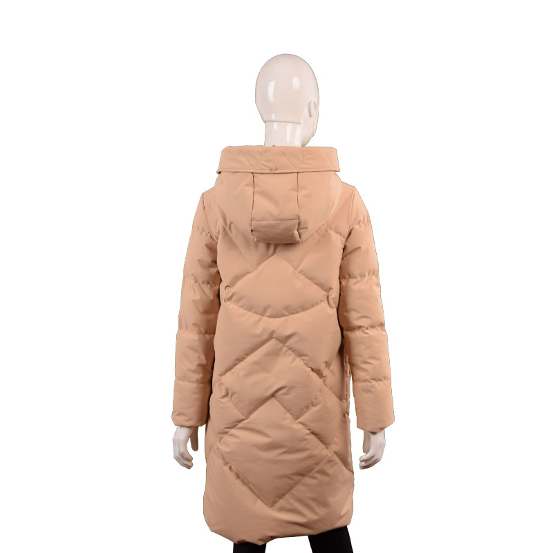 女士翻领连帽纯色长款羽绒服